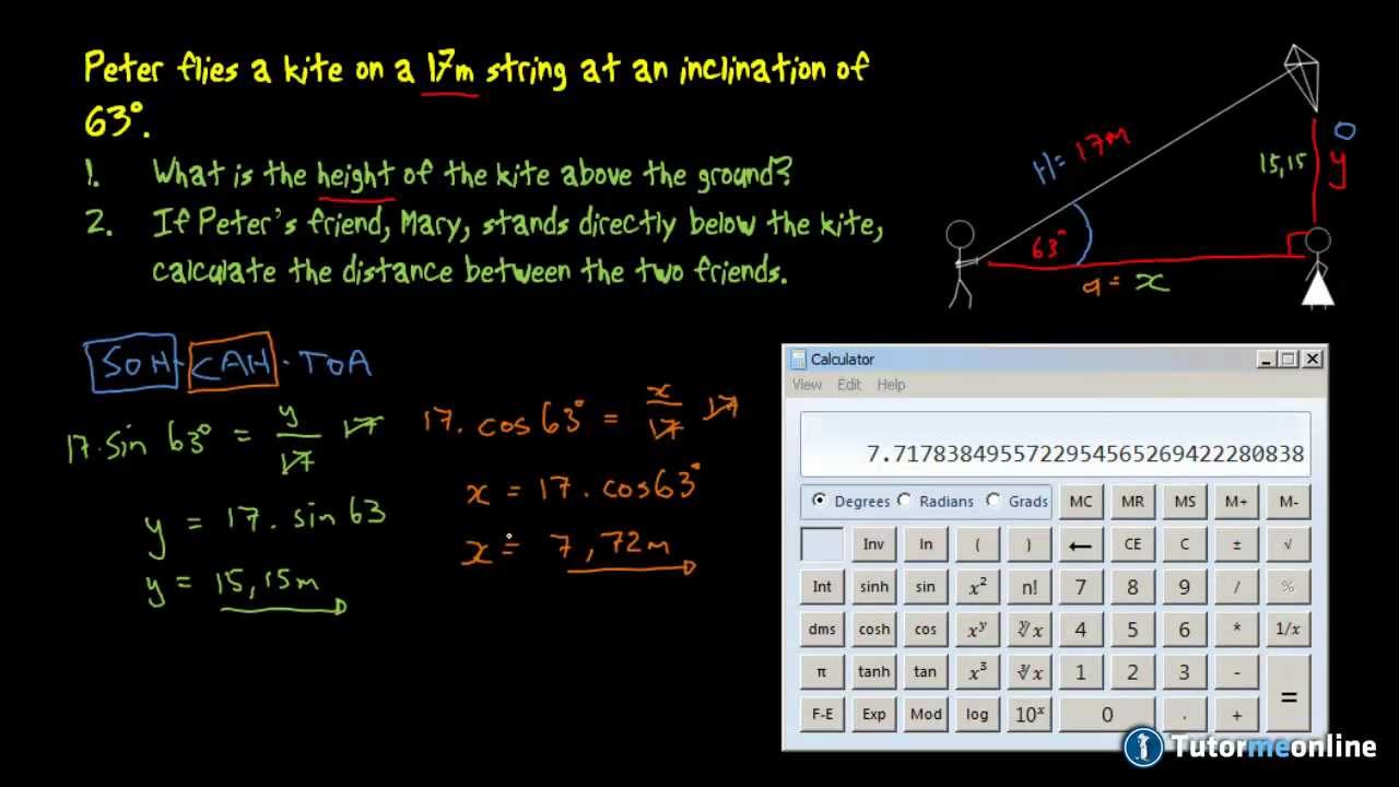 Solving Word Problems Using Trigonometry Finding The Height Of A Kite Word Problems Solving Word Problems Trigonometry